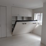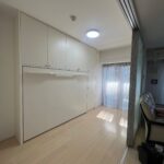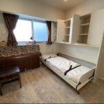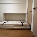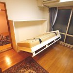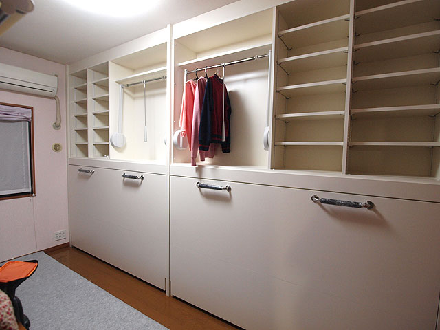 既存のコンセントを生かし、家具用コンセントをつけ、入口扉との干渉をしないように、現調を行い、納品いたしました。このご家族は、全員、弊社の格納ベッドを使用して頂いております。