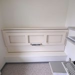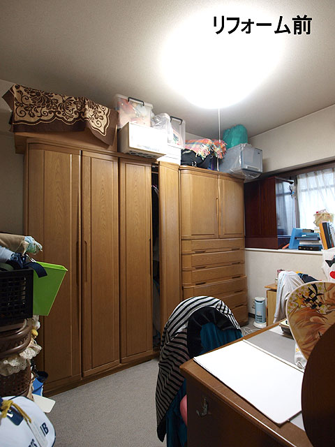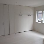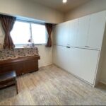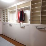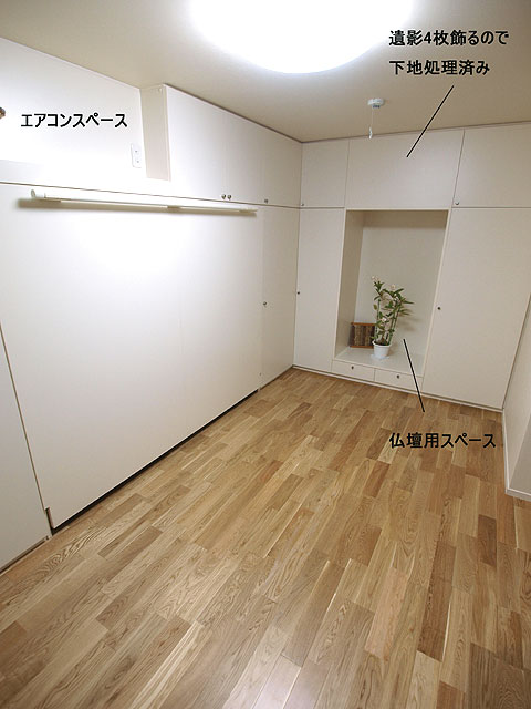 平成22年5月に、元請会社FOSフォスター様から一本の電話が入りました。年配のご夫婦が使用されるということで、横型に決まり、建具の色味にあわせ、アイボリーに決定。洋服の収納スペースや仏壇置き場も確保したいとのことで、壁面収納も設計・製作・設置もさせて頂きました。