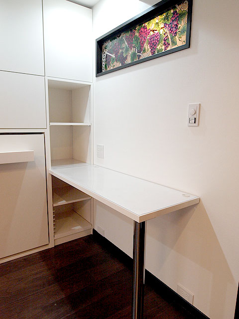 今回は、今回は予算の都合上、上部に収納を設けることはできませんでしたが、将来的なことを考慮し、両脇のエンドパネルだけは設置しました。