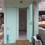 最初は、W高校の施設課の先生からの電話での引き合いでした。予算がおり、入札の運びとなりました。元請会社様から、入札後に聞いた話では、「和歌山の建具屋さんの見積よりもかなり安かった……」とのことでした。生徒用は18台シングル縦型を納品致しましたので、そちらも併せてご覧下さい。