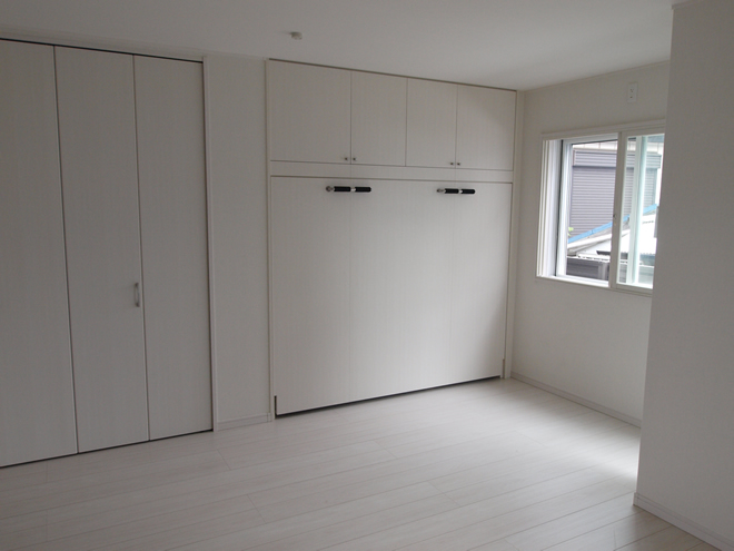 | ベッド仕様 | アイカ5414 白ポリ ダブル横型格納ベッド+壁面収納 |